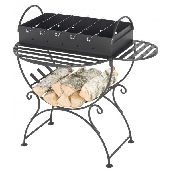 ●    Рабочая часть мангала оборудована боковыми и передними полками, предназначенными для использования в качестве подставки для посуды и соусов.